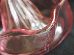 どっしりと厚みのあるピンク色の透明感のあるガラスが