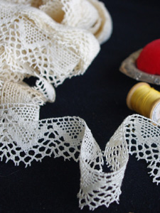 デッドストックのリネンレースです。大変美しく、繊細な雰囲気を醸し出しています。