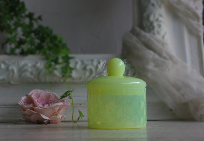 とても美しいヴァセリンガラスのキャンディーポットです。