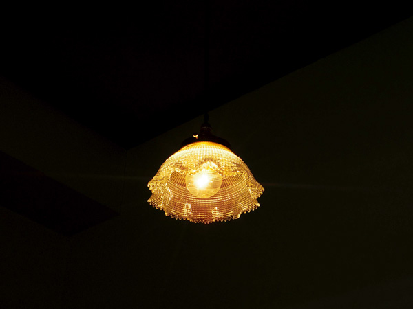 フチのフリルに、雨粒のようなぷっくりしたガラスが配されたおしゃれなシェードです。